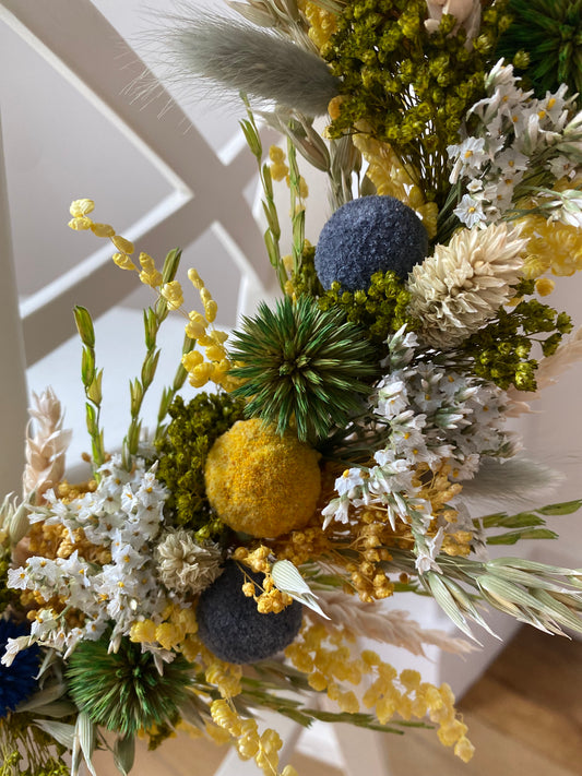 Au-delà des couronnes, explorez un univers de fleurs séchées : bouquets, arrangements créatifs, décors événementiels... Votre projet floral prend vie avec notre expertise.