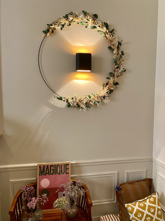 Vous cherchez une pièce de décoration qui sort de l'ordinaire ? Nos couronnes en très grand format sont conçues pour surprendre et émerveiller. Leur taille imposante (80 cm de diamètre) et la richesse de leurs compositions florales en font des créations uniques qui apporteront une originalité inégalée à vos murs, qu'ils soient personnels ou professionnels. Faites forte impression avec une décoration qui ne ressemble à aucune autre.